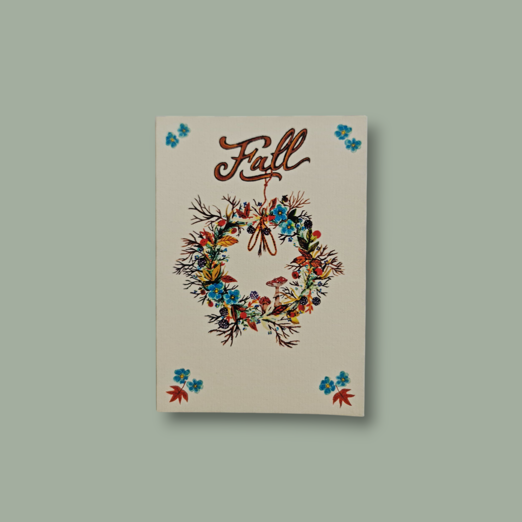 Découvrez ma carte postale Couronne d’automne, imprimée en France avec des encres de qualités sur du papier crème texturé de 300 g/m².