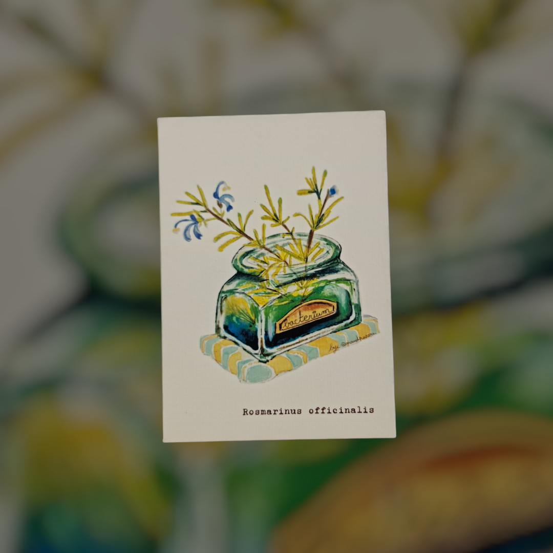 Ma carte postale élixir de romarin, imprimée en France avec des encres de grande qualité sur du papier crème texturé de 300 g/m².